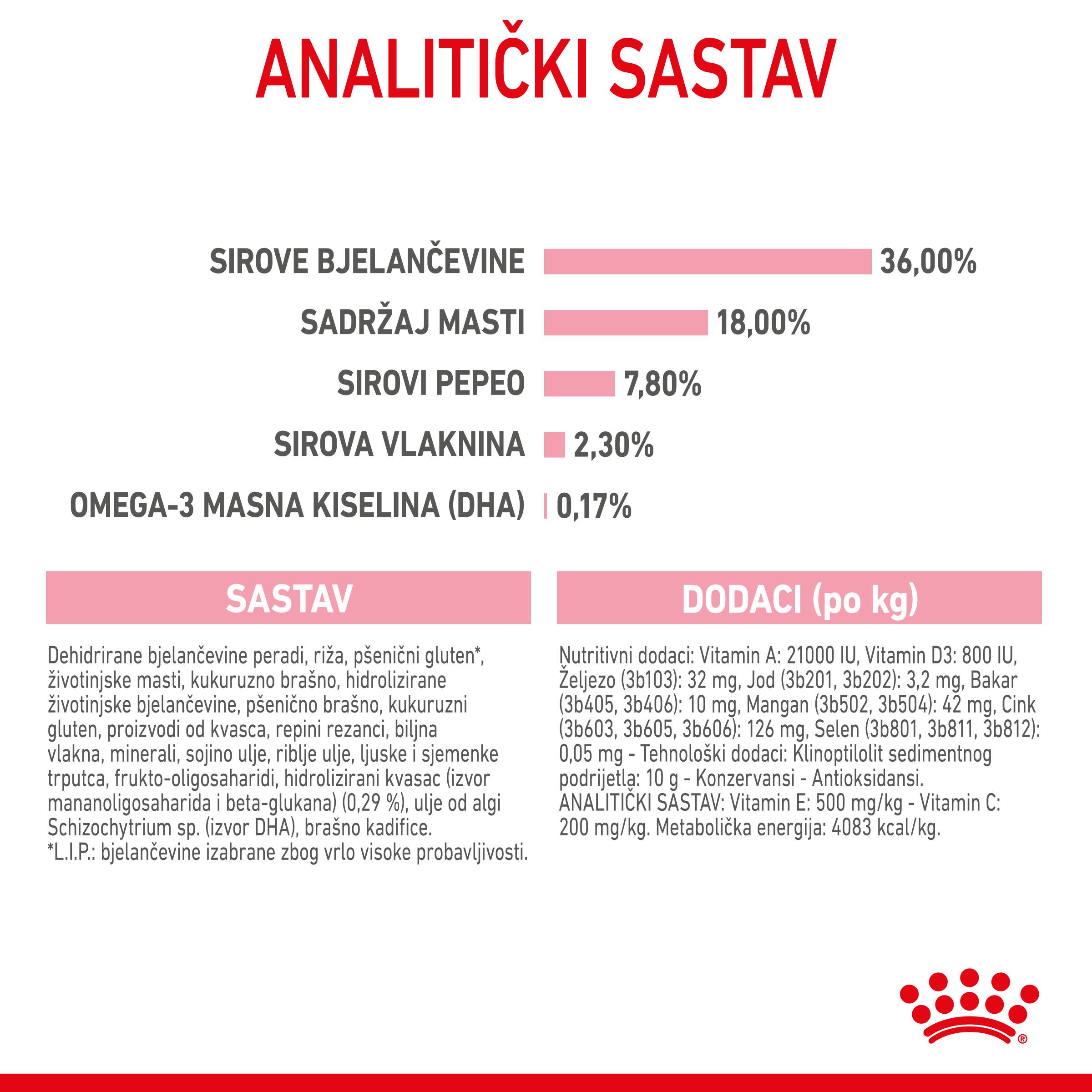 • Prilagođen sadržaj bjelančevina, vitamina i minerala za podršku rastu