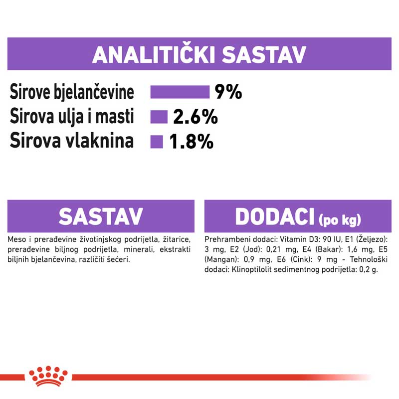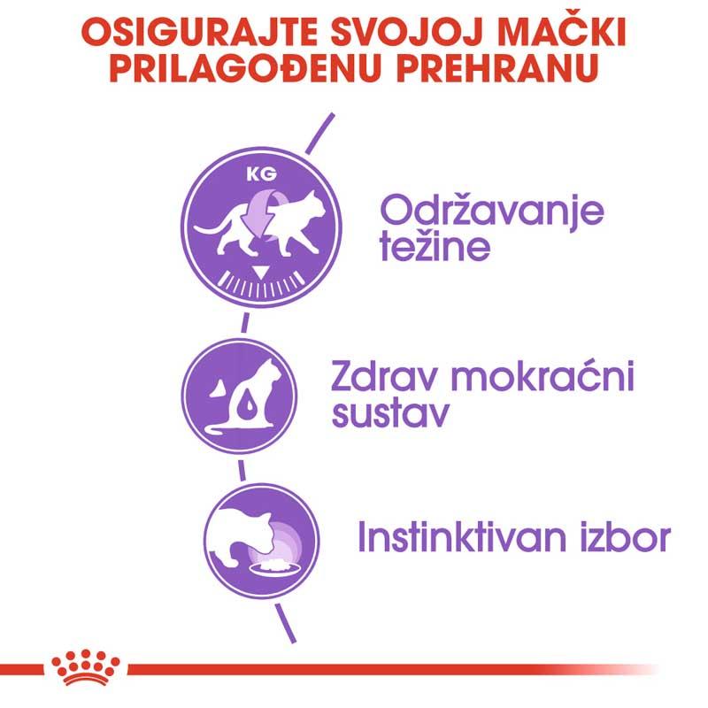 ROYAL CANIN® posvećen je pružanju prehrambenih rješenja za potrebe vašeg kućnog ljubimca. Svi naši proizvodi prolaze opsežan postupak kontrole kvalitete kako bismo zajamčili najvišu kvalitetu hrane, ali i zadovoljili posebne prehrambene potrebe te način života vaše mačke. To znači da je hrana ROYAL CANIN® Sterilised in Gravy dovoljna za potpu